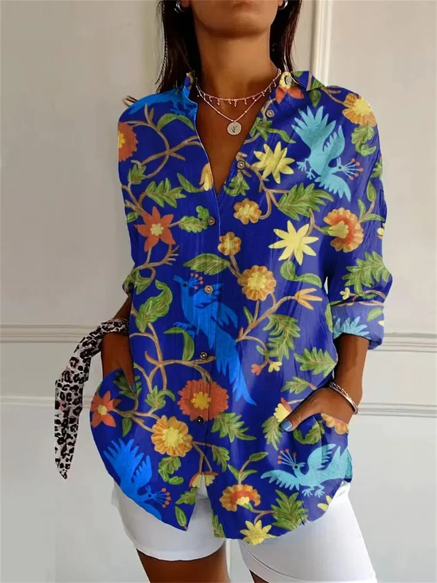 Alexa - Long Sleeve Flower Pattern Blouse